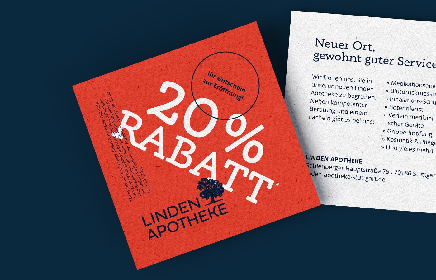 Die Linden Apotheke in Stuttgart-Ost Gablenberg ist seit vielen Jahren ein treuer Kunde von uns – beziehungsweise waren es bis vor Kurzem sogar zwei: die Linden Apotheke und die Schwaben Apotheke. Nun sind beide unter einem neuen Dach zusammengezogen – in eine neue, moderne Location genau in der Mitte der bisherigen Standorte. Und wir durften diesen großen Schritt begleiten – kommunikativ, gestalterisch und mit ganz viel Freude an der gemeinsamen Entwicklung.