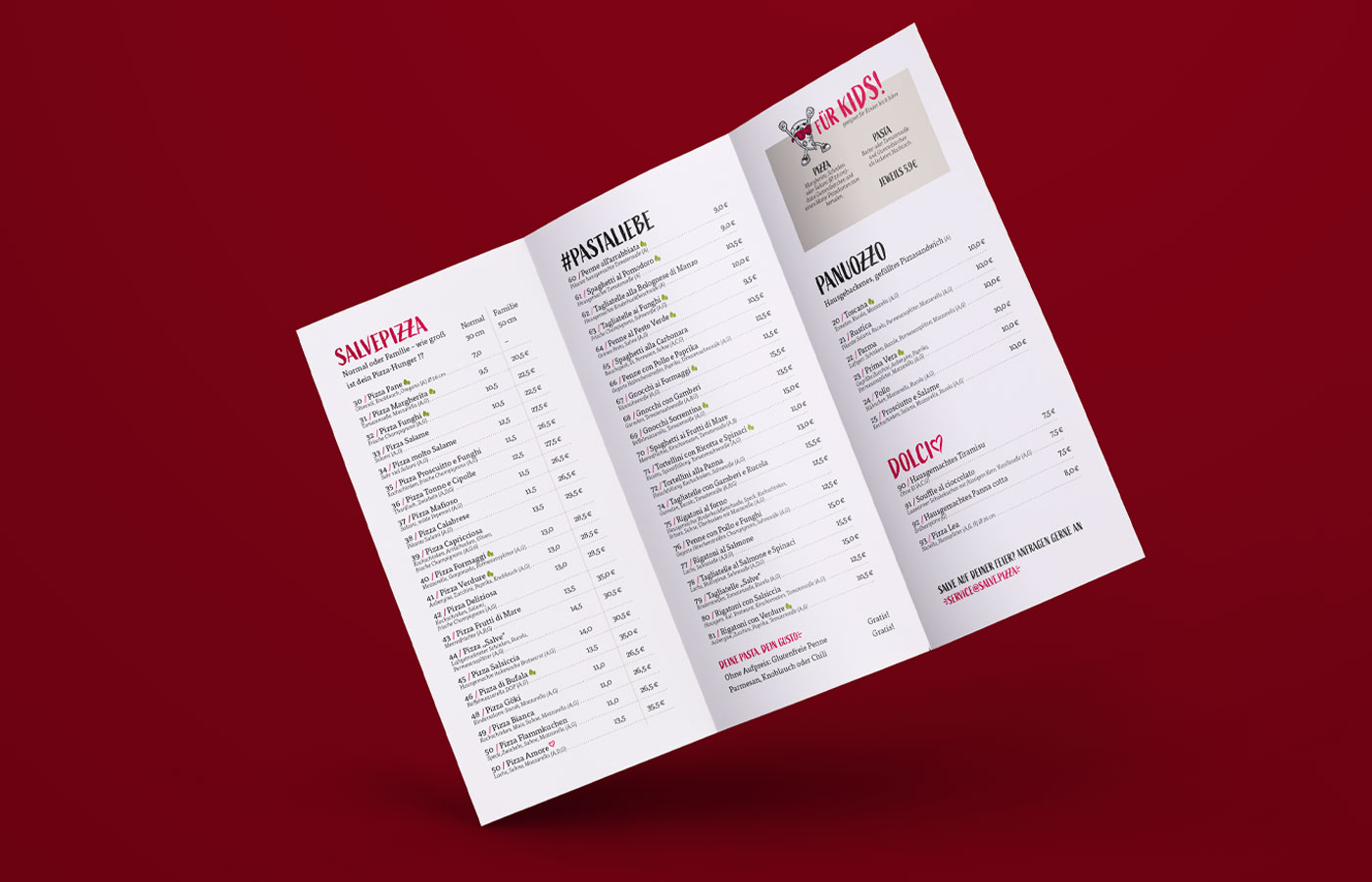 SALVE PIZZA bekam von uns einen neuen Look – und der ist so heiß wie eine frisch gebackene Margherita! Wir haben nicht nur das Logo aufgepeppt, sondern auch einen fetzigen Gesamtauftritt serviert. Die Speisekarte? Stylisch. Die Pizzaschachteln? Mehr als fünf Motive zum Sammeln (weil einmal Salve nie genug ist). Die Fahrzeuge? So plakativ, dass man sie schon siehst, bevor der Magen knurrt. Und die Shirts für die Mitarbeiter? Knallig, cool und so einprägsam, dass man sie schon von Weitem auf der Straße erkennt!