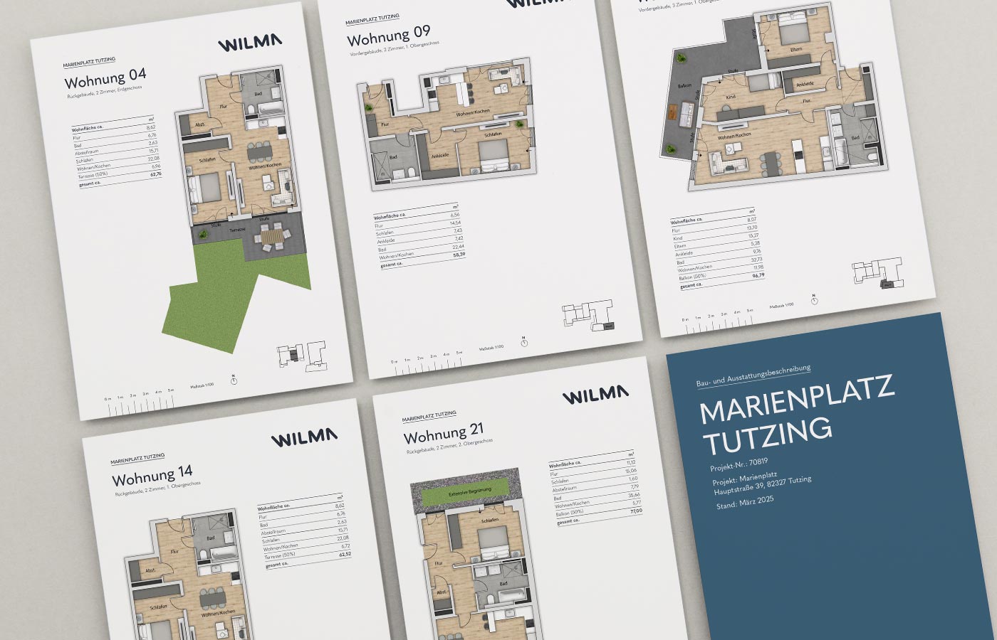Ob Bauzaunbanner, Bauschilder, Vertriebscontainer, Großflächenplakate oder Exposés: Wir gestalten alles im Corporate Design von Wilma, liefern Texte, entwickeln passende Bildwelten, setzen grafisch um und sorgen dafür, dass jedes Projekt inhaltlich wie visuell überzeugt. Auch Grundrissblätter, Baubeschreibungen und die passende Landingpage kommen aus unserer Feder – mit viel Liebe zum Detail und einem sicheren Gespür für Zielgruppe, Tonalität und Wirkung.