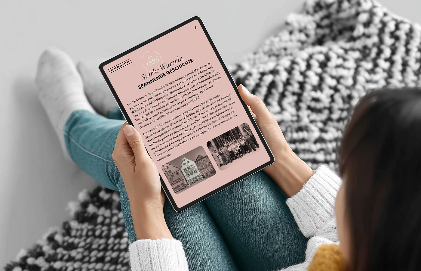 Mit wir.werdich.com entstand eine eigenständige Unternehmenswebsite, die Raum für Haltung, Werte und Identität schafft. Hier geht es nicht um einzelne Produkte, sondern um das große Ganze: Wofür Werdich steht, wie das Unternehmen denkt und was es langfristig ausmacht.