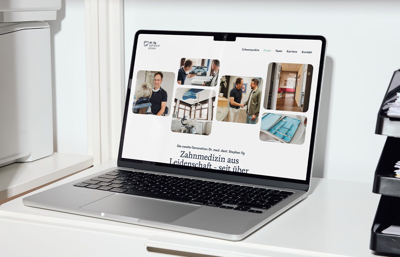 Von Logo über Farbwelt, Schriften und alle Branding-Details bis zur fertigen Website: alles aus einem Guss. Kleine Alltagshelfer wie Terminkärtchen transportieren den neuen Look jetzt täglich zu den Patient:innen, und auch Praxis- und Gebäudebranding zeigen zukünftig, wer Qualität lebt.